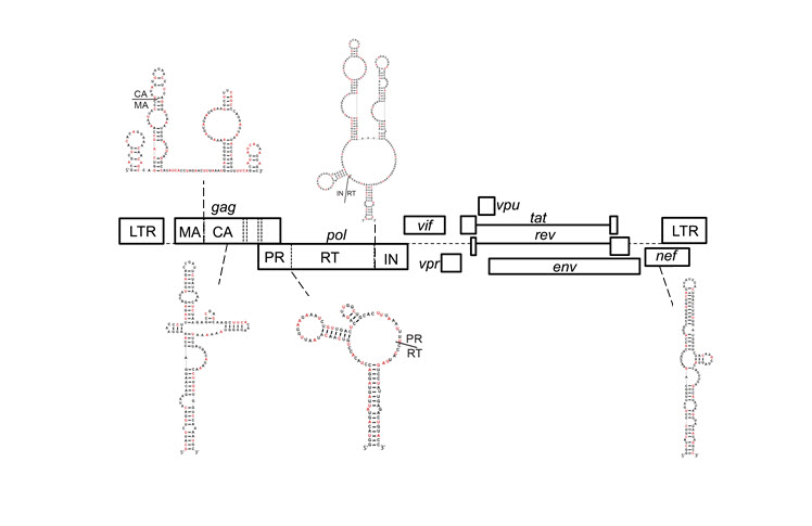 The roles of five conserved lentiviral RNA structures in HIV-1 replication